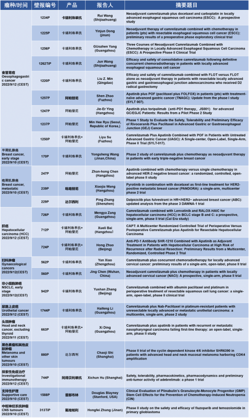 作为从事创新和高品质药物研发的国际化制药企业,AG尊龙凯时医药的研究成果在2022 ESMO大会上还收获了25项壁报形式的报告。其中,食管胃癌领域共有9项研究入选,研究的方案主要是卡瑞利珠单抗或卡瑞利珠单抗联合阿帕替尼,通过与化疗或放化疗联用,新辅助治疗食管鳞癌或胃癌。2022年9月12日(CEST),让我们齐聚ESMO大会,共同领略食管胃癌研究领域的学术盛宴。此外,AG尊龙凯时医药达尔西利、吡咯替尼、阿得贝利单抗等创新药还有4项乳腺癌研究、3项肝癌研究及其他领域的9项研究都将会以壁报展出,让我们共同期待!